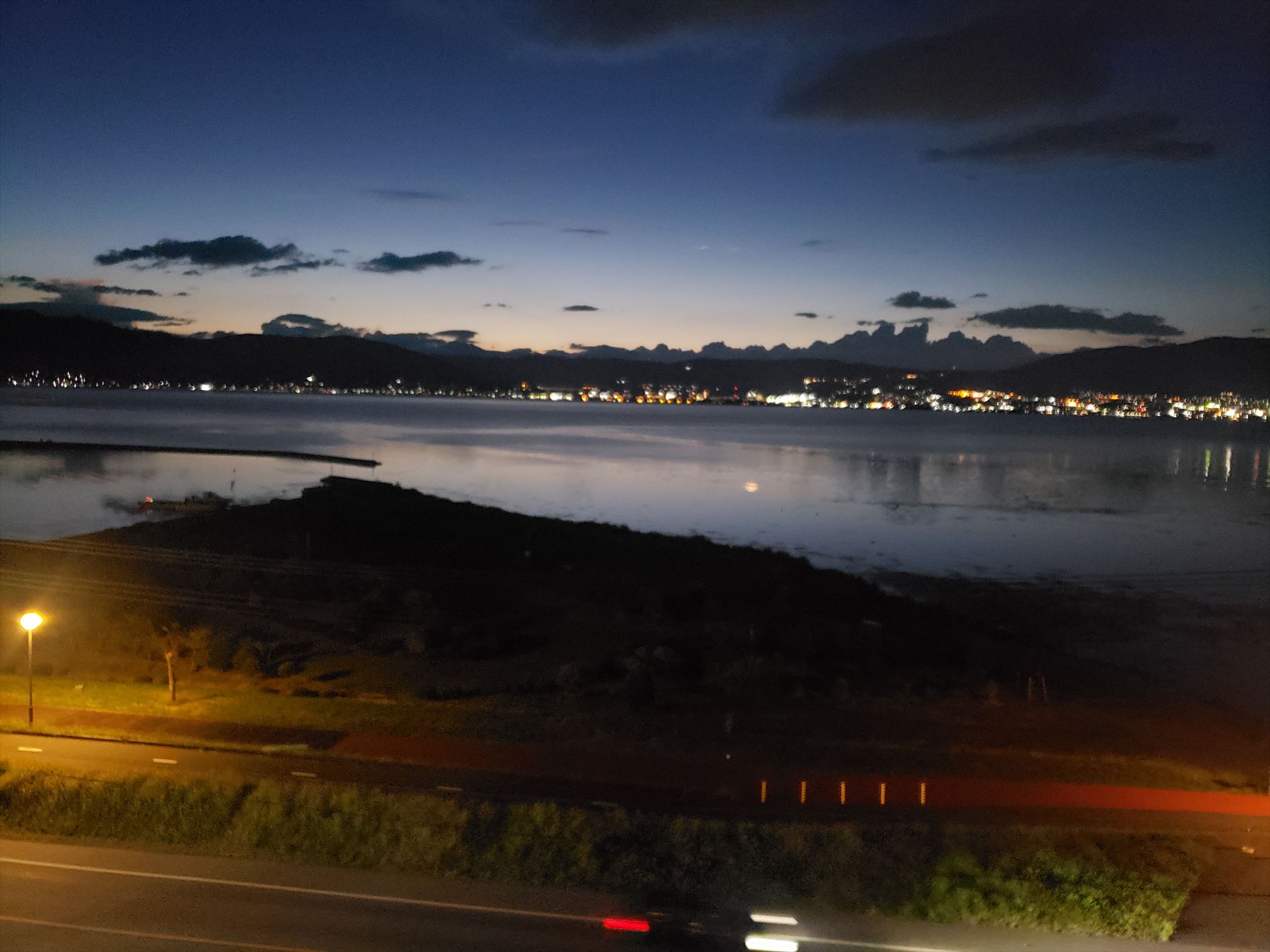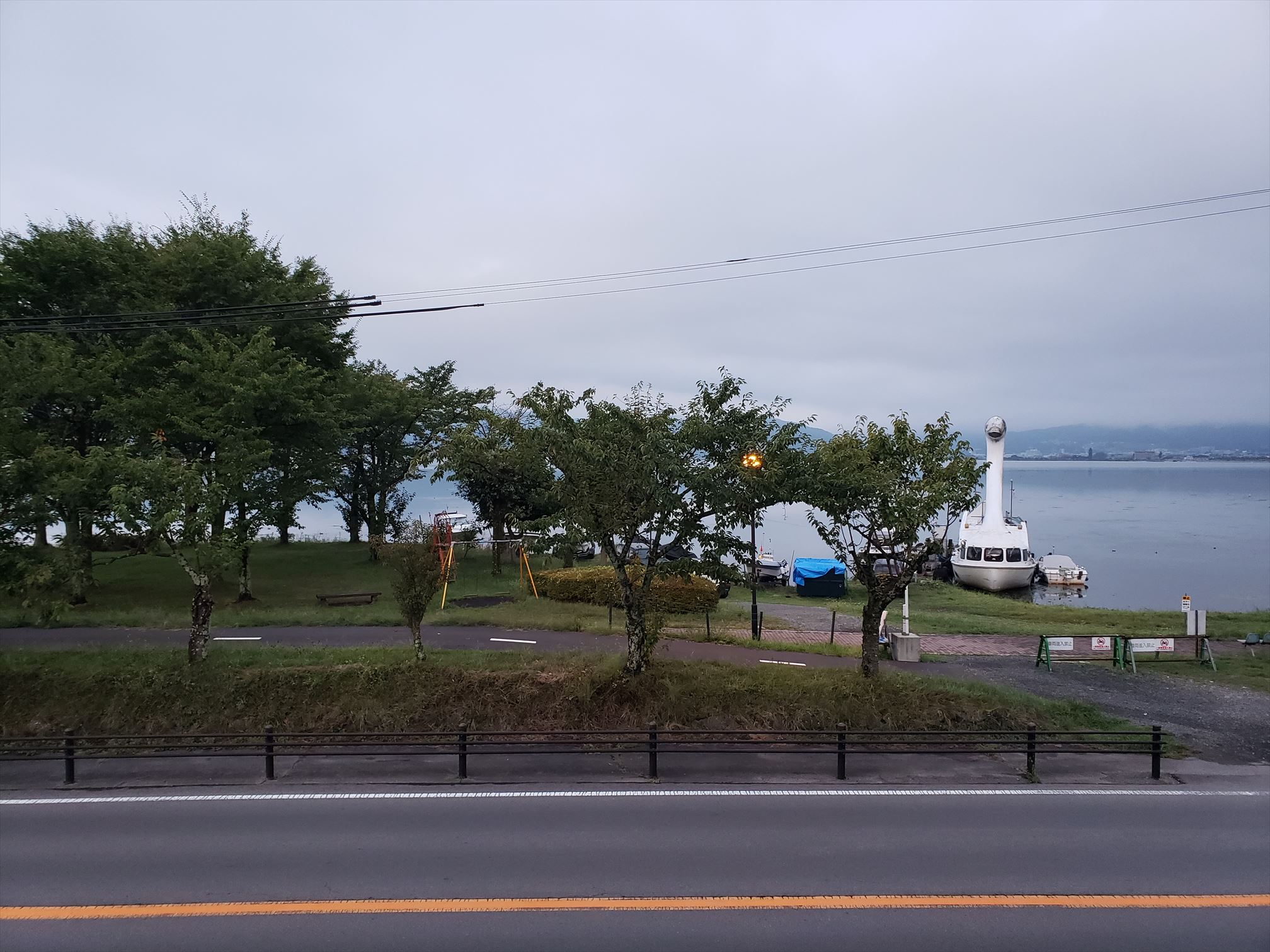 カーテンを開けると眼前に諏訪湖。